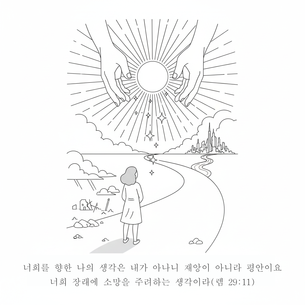 평소에 잘 생각하지 않았을 뿐이지 사실 답은 명확하다. 다만 그걸 내가 얼마나 믿는지는 다른 문제기 하다. 우리는 두려움과 환난을 재앙과 형벌처럼 이해하기 일쑤다. 하지만 분명히 하나님께서는 그렇게 생각하지 않으신다. 우리를 향한 하나님의 생각은 재앙이 아니라 평안이고, 장래에 소망을 주시는 것이기 때문이다.