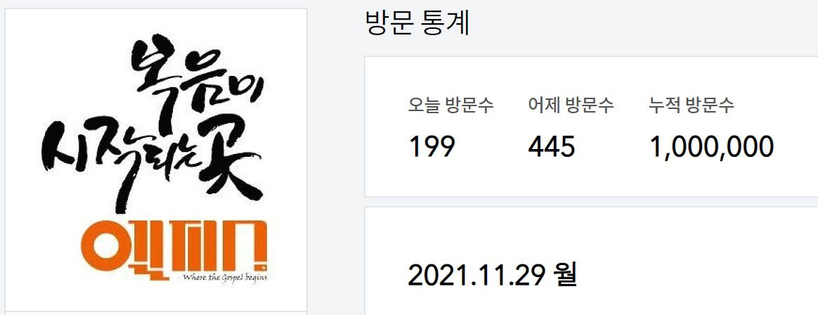오늘로 방문자 100만명을 넘어섰습니다.