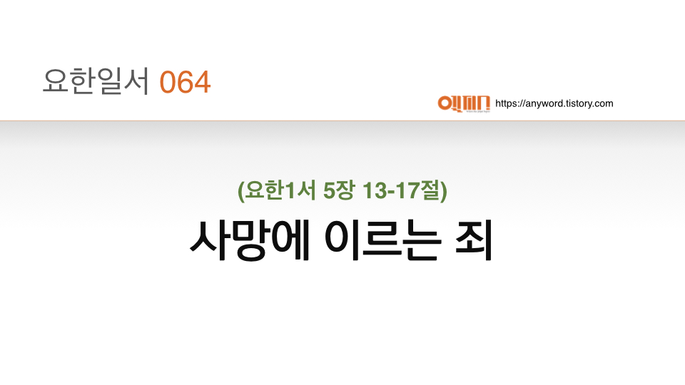 | 요한1서 065(5:13-17) 사망에 이르지 않는 죄 (0) | 2022.01.13 |